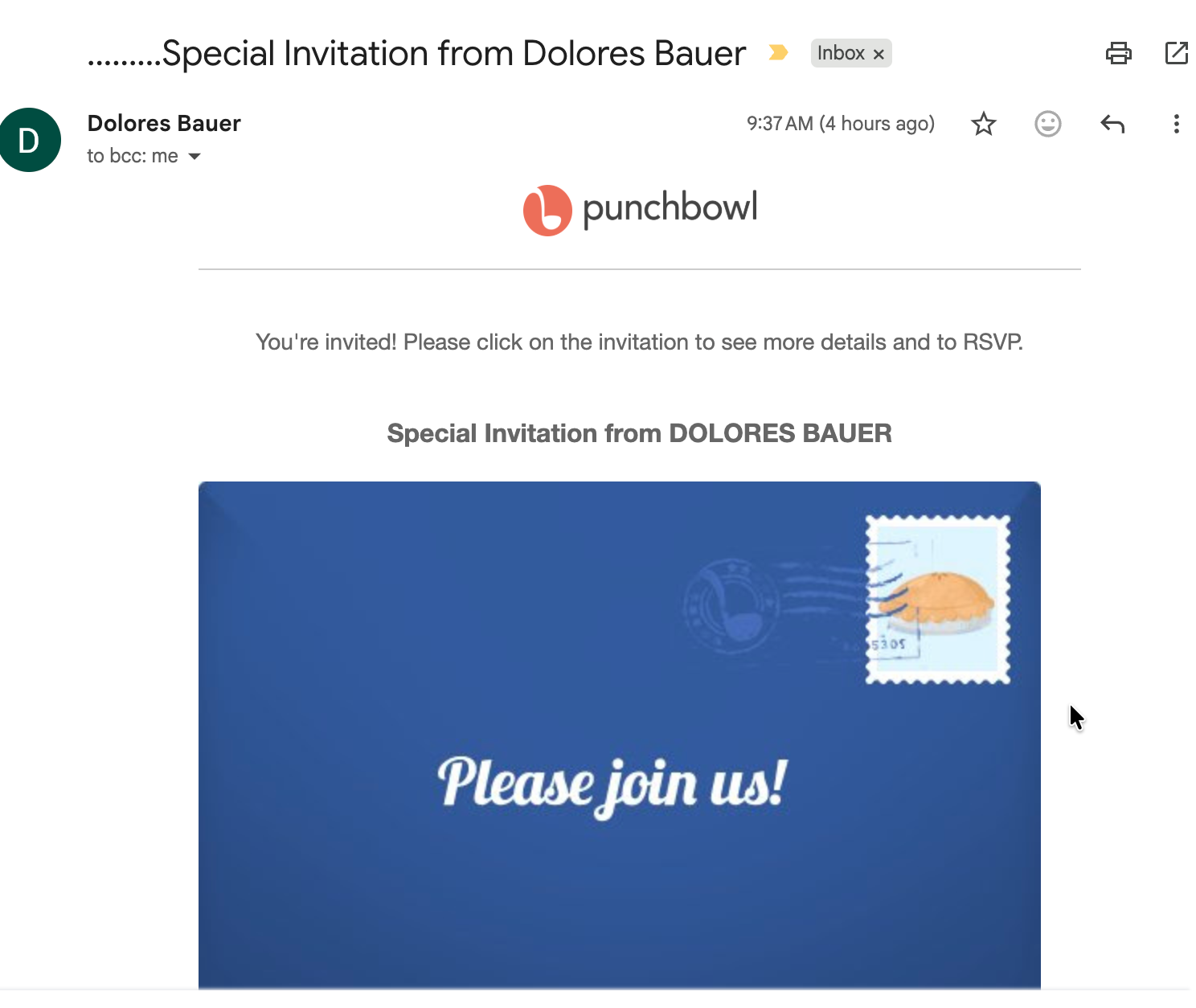You may have – or will – receive a "special invitation from Dolores Bauer" in your email inbox. It may be tempting ("Oh, I wonder if that's Dolores from my high school class"), but for heaven's sake, don't touch it. Why? Because there is no "Dolores Bauer" as a "she"; only "Dolores Bauer" as a "they" – the scammer kind of "they."