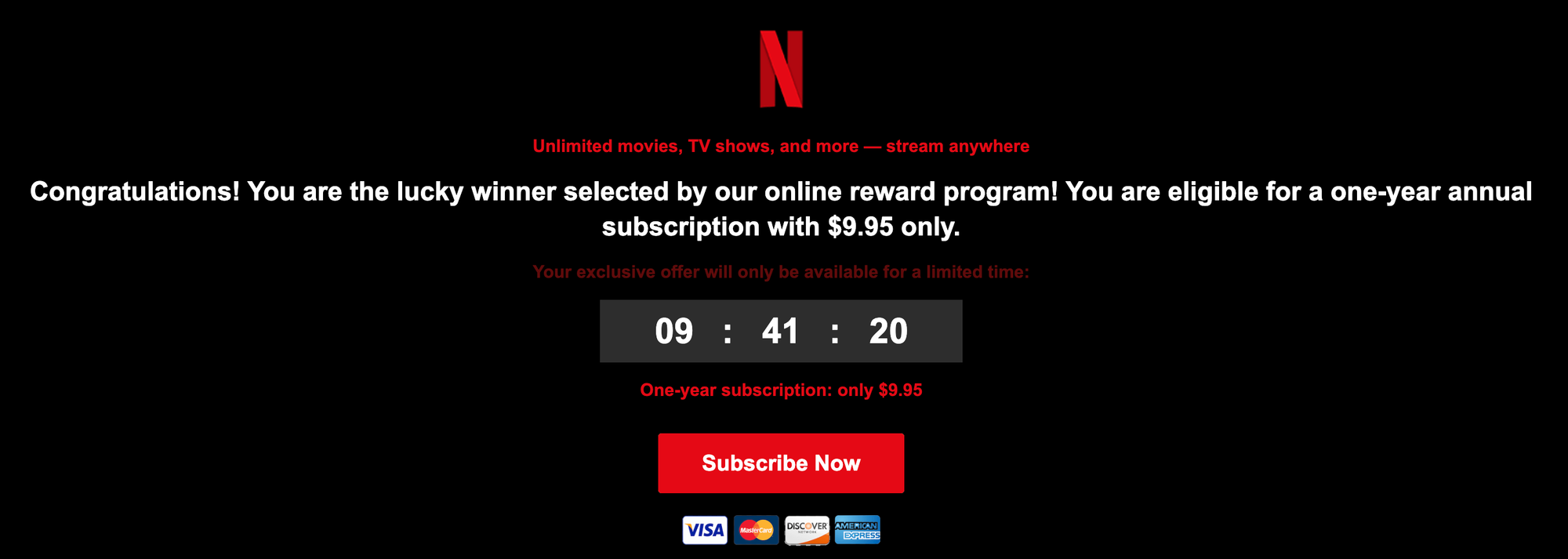 The tricksters behind this are also trying to sucker people in with an "online reward program." No such animal exists at Netflix.