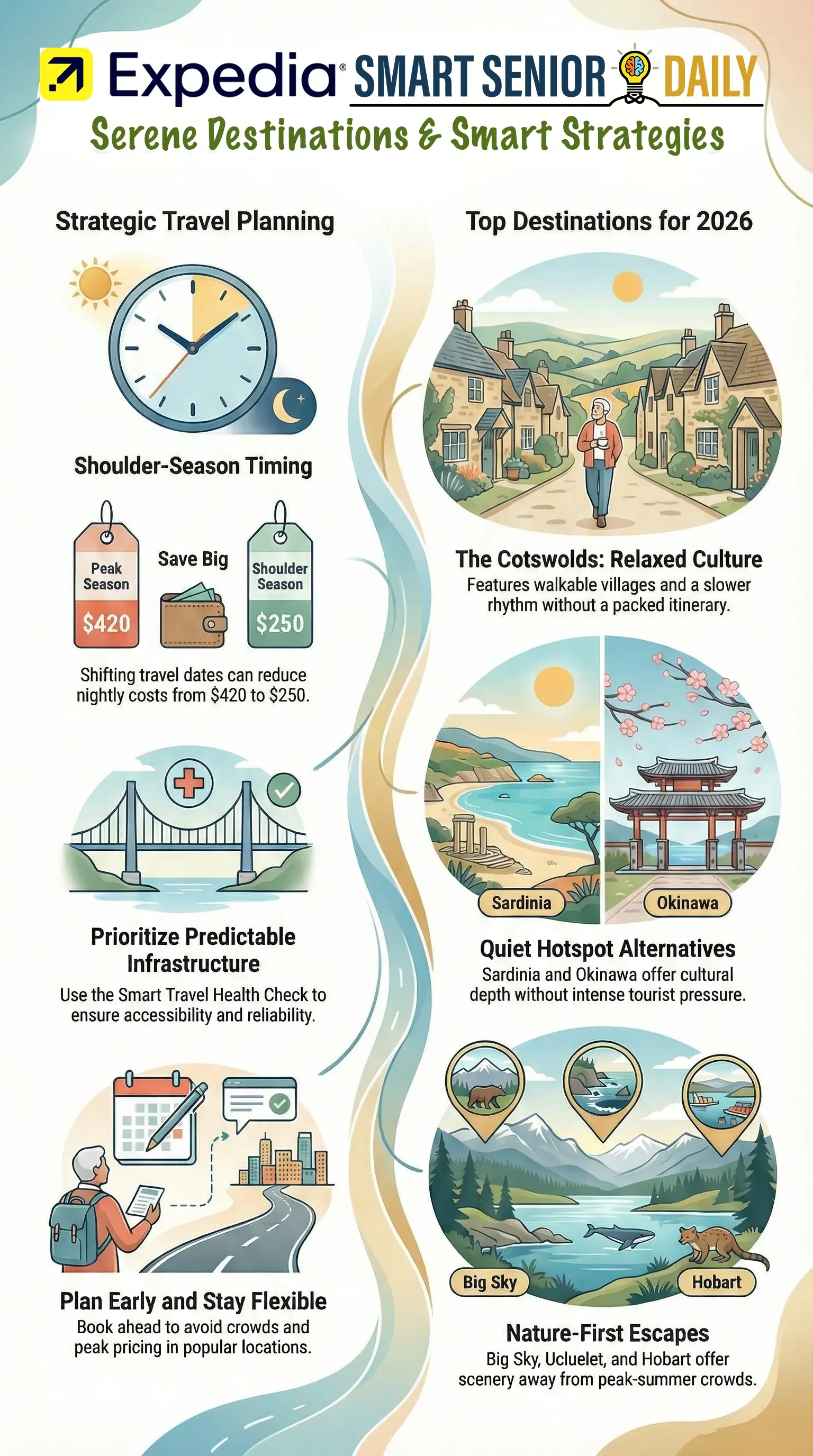 Following up on our first installment of Smart Senior Daily's Travel Trends for 2026, new data from Expedia Group shows rising interest in destinations that trade nightlife and frenzy for scenery, walkability, and a slower pace.