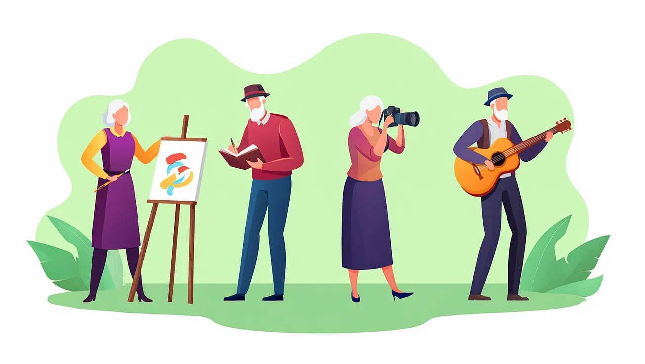 Some share deeply personal reflections — how painting, writing, or music keeps them grounded or brought them back to a long-lost passion. Others spotlight new projects, performances, or books that prove creativity doesn’t stop with age.